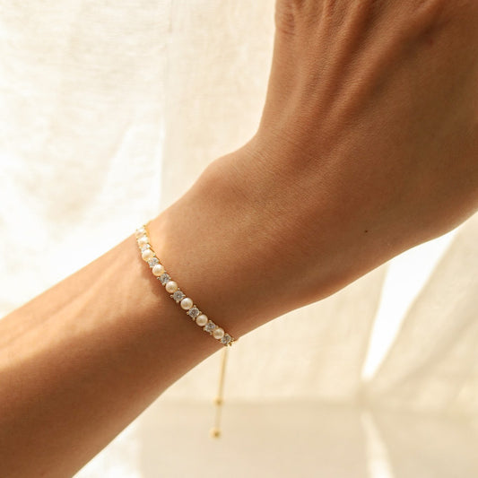 Tiny Diamond Pearl Bracelet