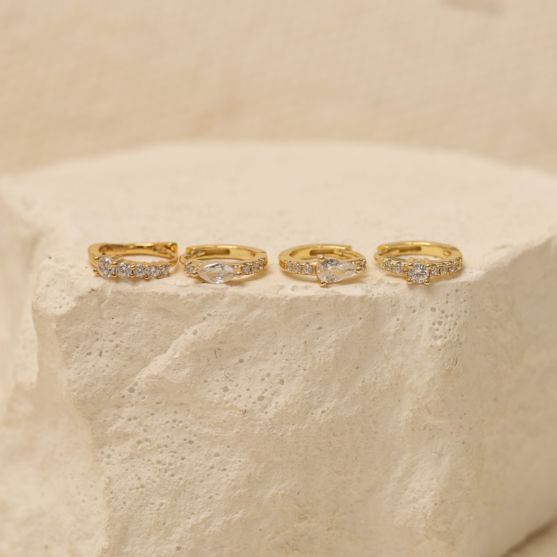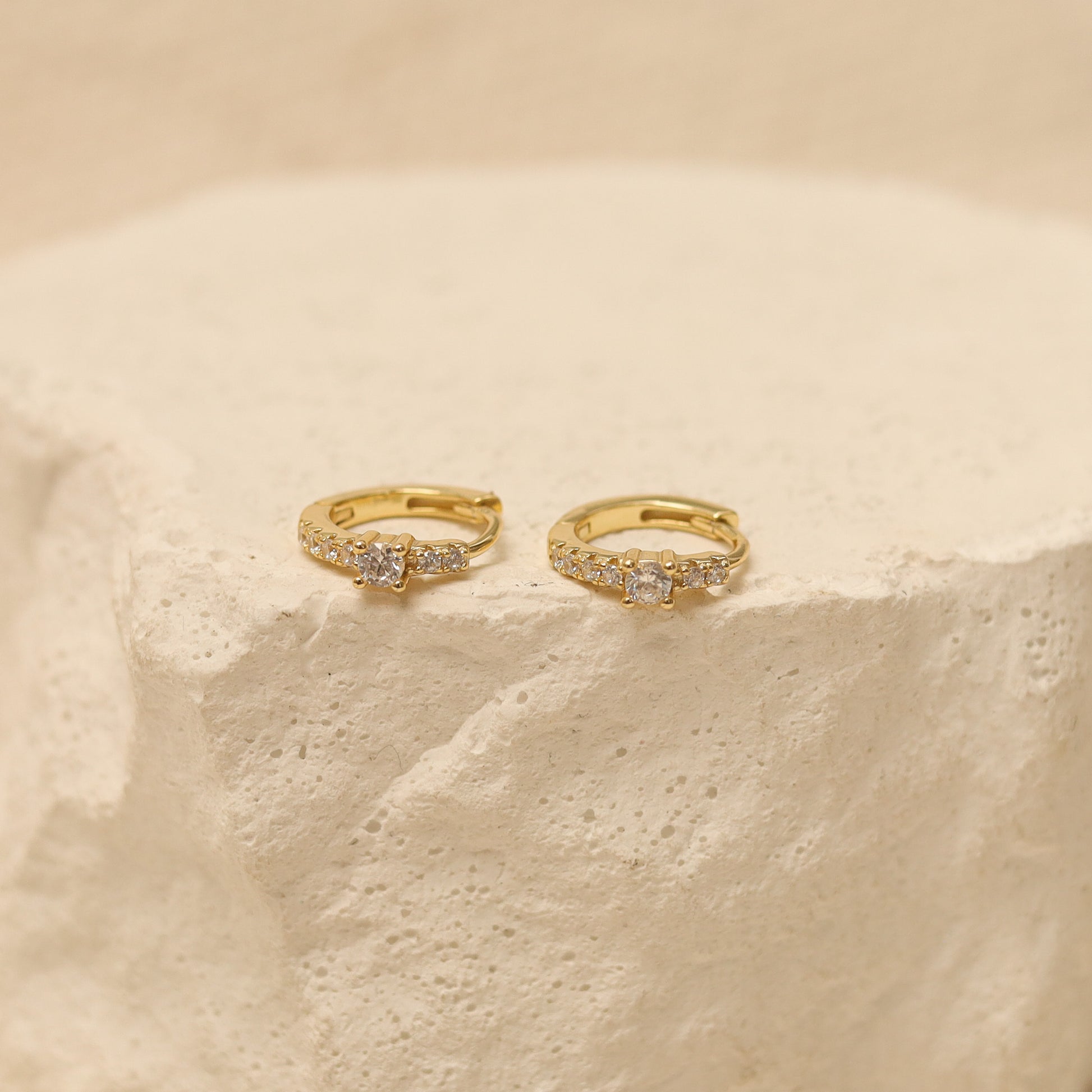 Elevate your elegance with these dainty clear stone hoop earrings. Their delicate design and sparkling stones add a subtle yet refined touch to any outfit, perfect for both everyday wear and special occasions. Lightweight and timeless, they effortlessly enhance your look with understated sophistication.