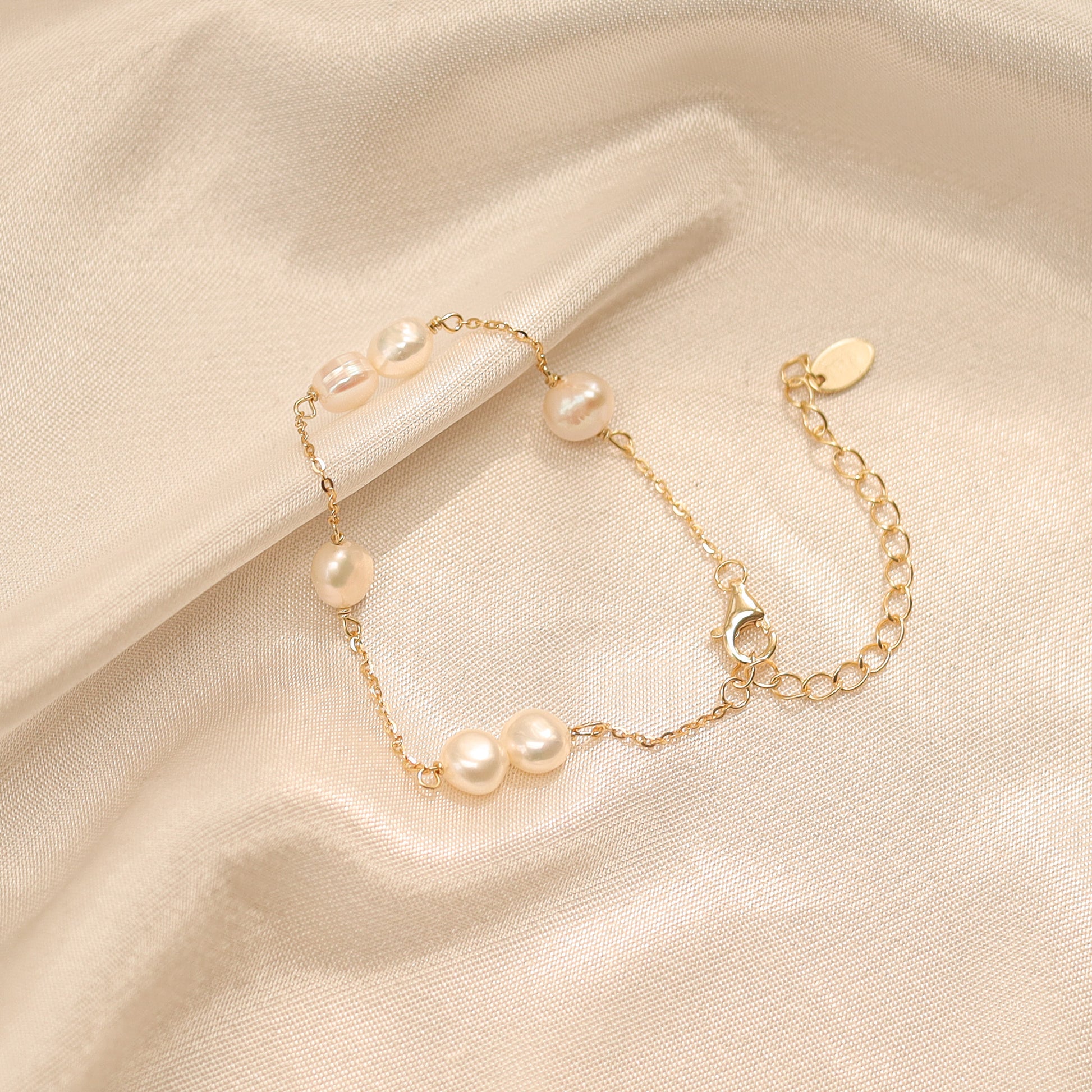 Elevate your elegance with this dainty freshwater pearl bracelet, featuring lustrous pearls delicately strung for a timeless look. Its refined simplicity complements any outfit, making it perfect for both everyday wear and special occasions. Crafted to enhance your natural grace, this bracelet adds a subtle touch of sophistication to your jewelry collection.