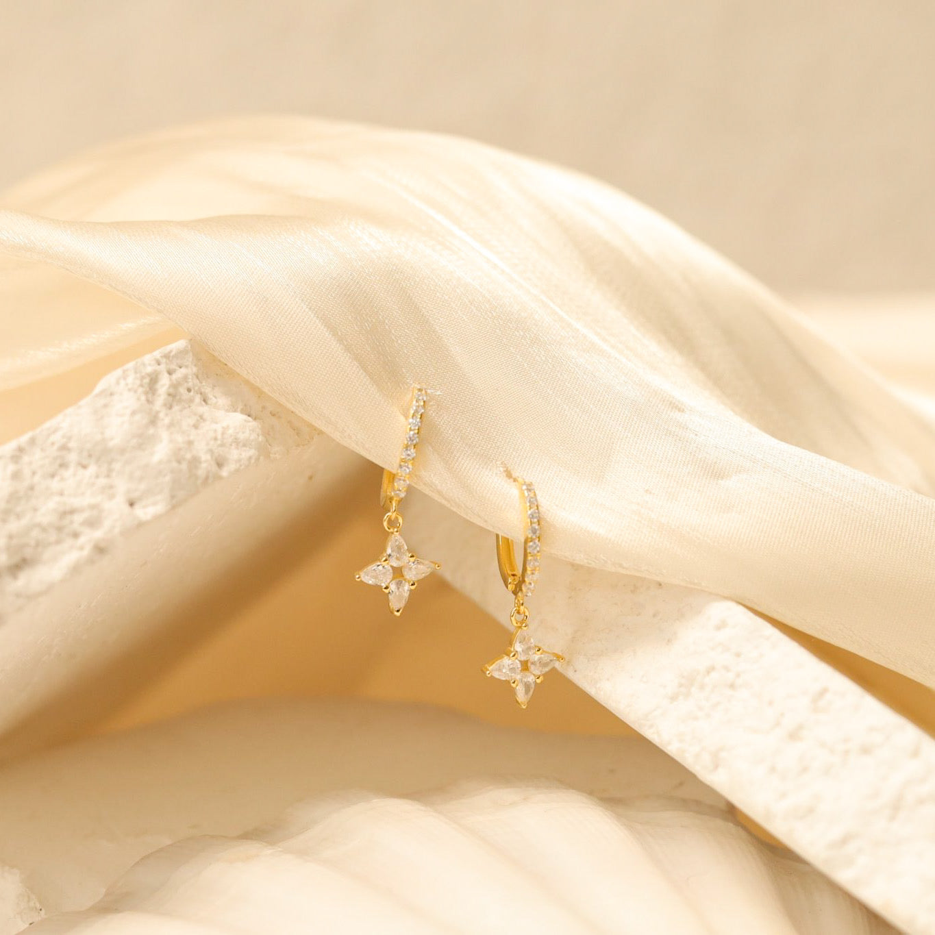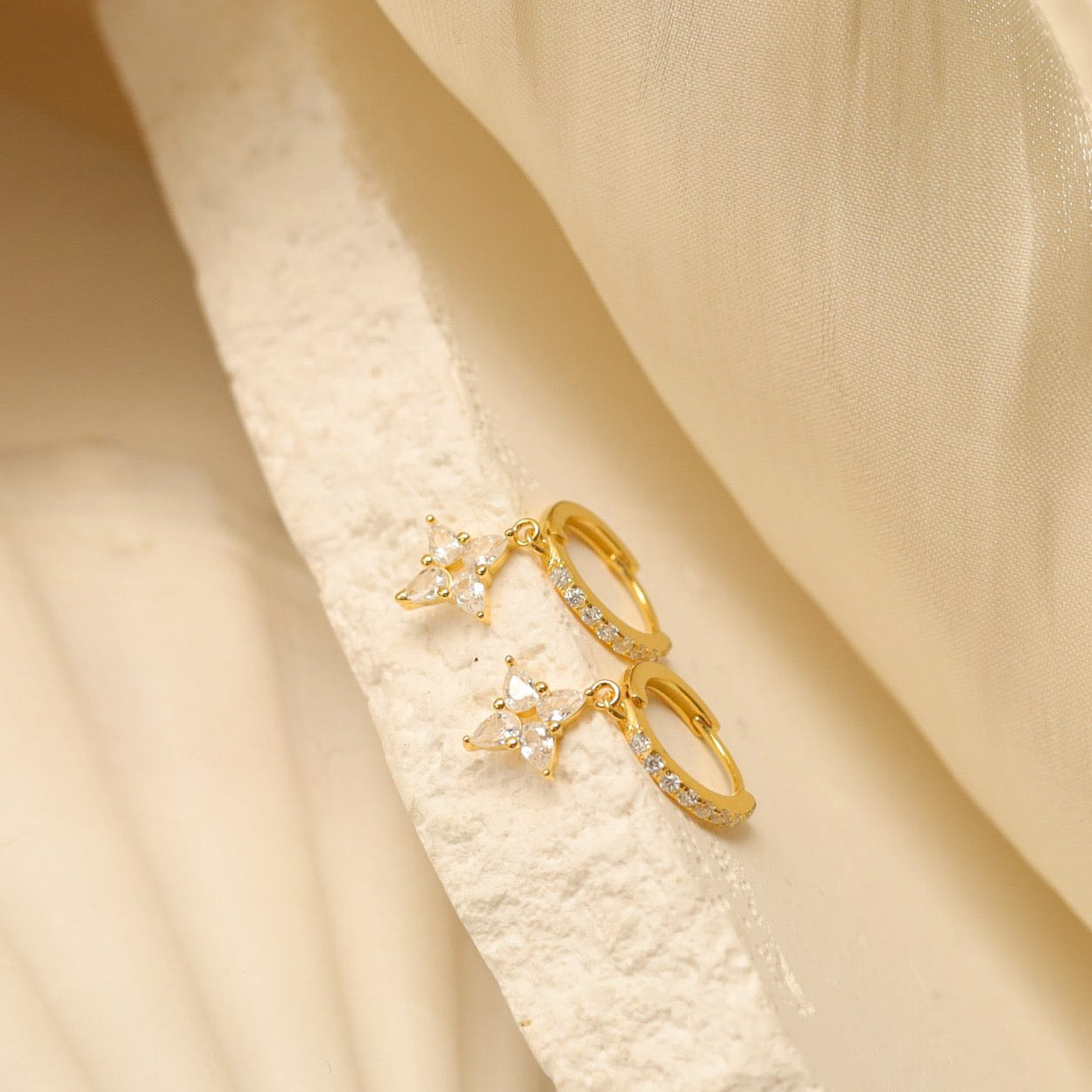 Four Leaf Clover Drop Huggie Earrings