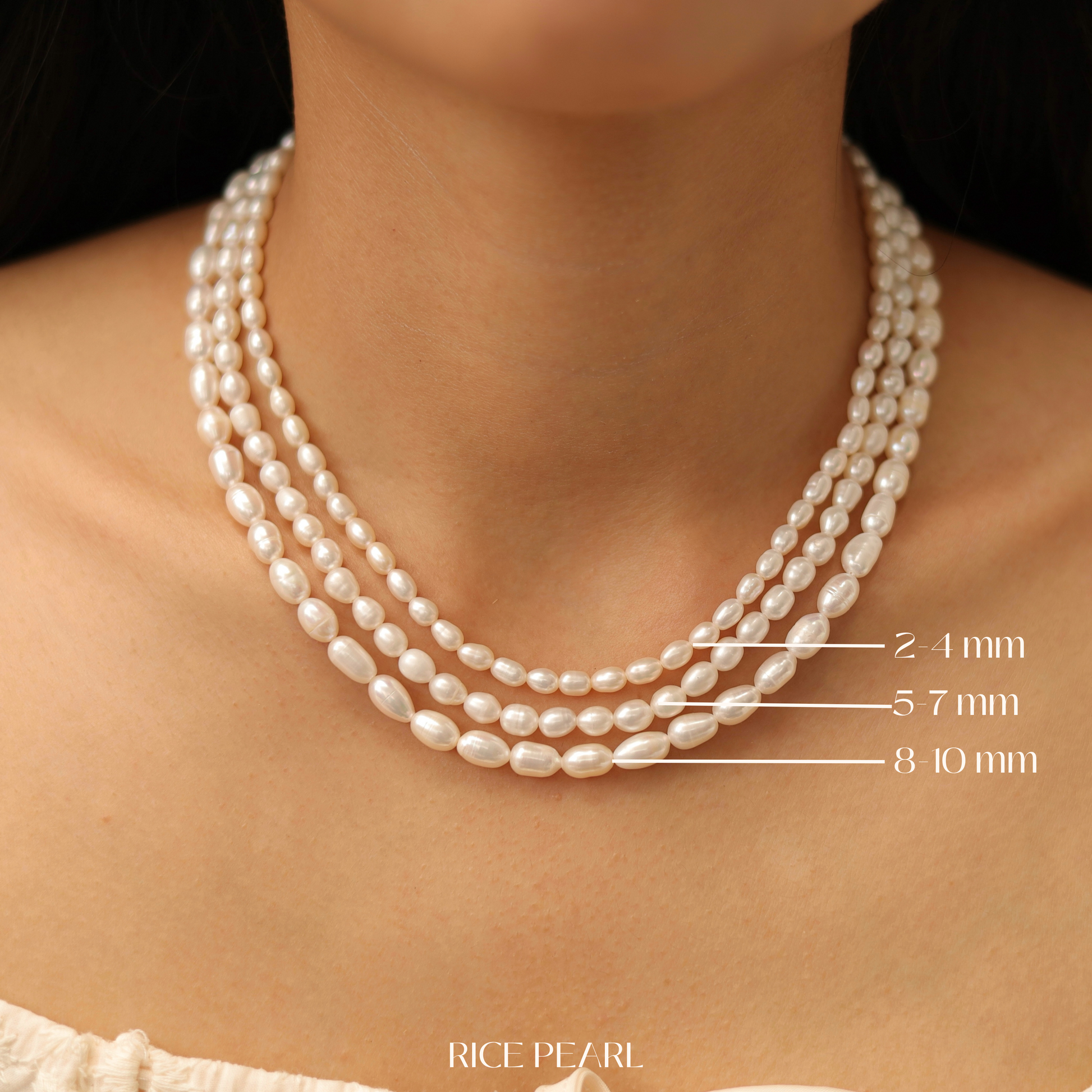 We utilize cultured freshwater pearls that have a gorgeous white shine.