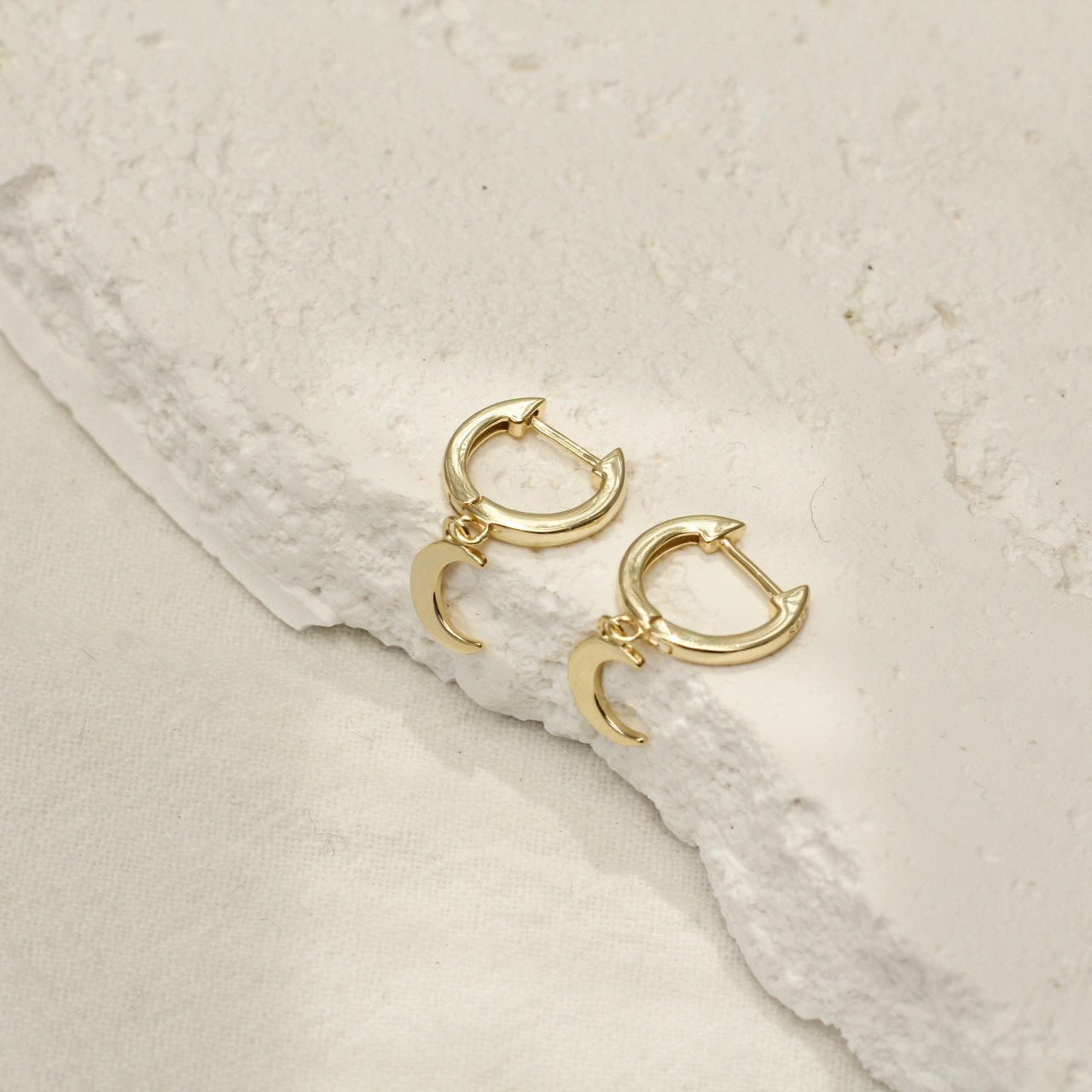 Complete your look with our Moon Hoop Earrings! These elegant earrings are a must-have accessory for any outfit. Made of 14ct gold plated solid silver, they add a touch of sophistication and style to your appearance. With their unique moon hoop design, you'll stand out from the crowd and make a statement.
