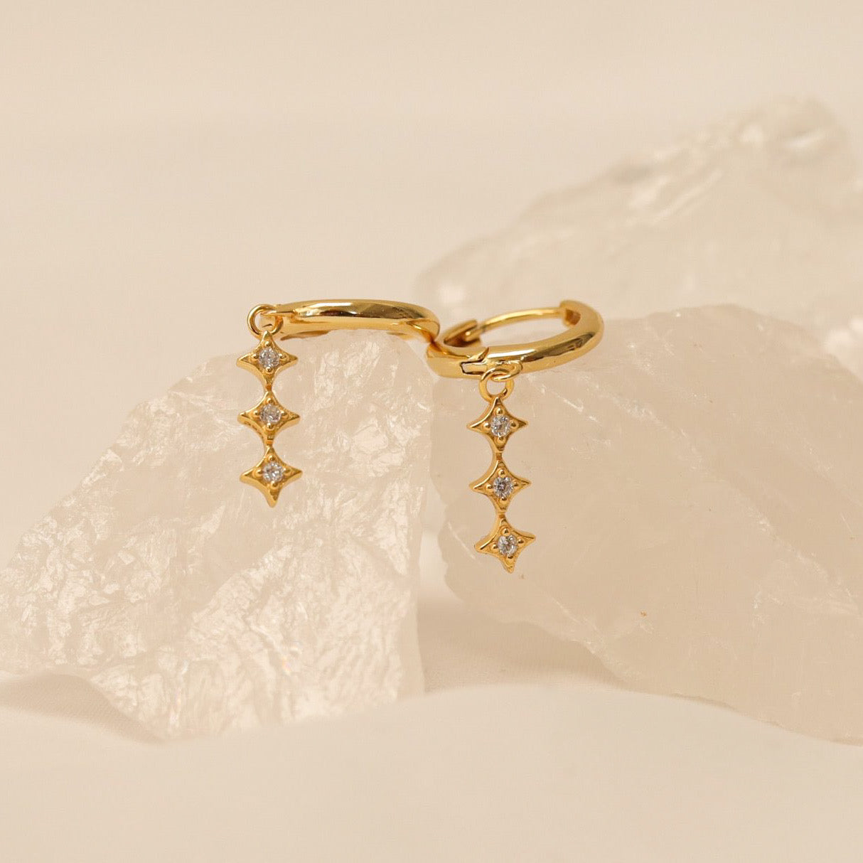 Transform your style with our Triple Star Huggie Earrings! These minimalistic yet stunning earrings feature three intricately designed stars that hug your earlobes, adding a touch of elegance to any outfit. Make a statement and stand out from the crowd with these unique and versatile earrings.